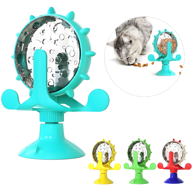 Turn snack time into brain-boosting fun! This rotatable treat dispenser makes cats and small dogs work for their treats, improving focus and intelligence.