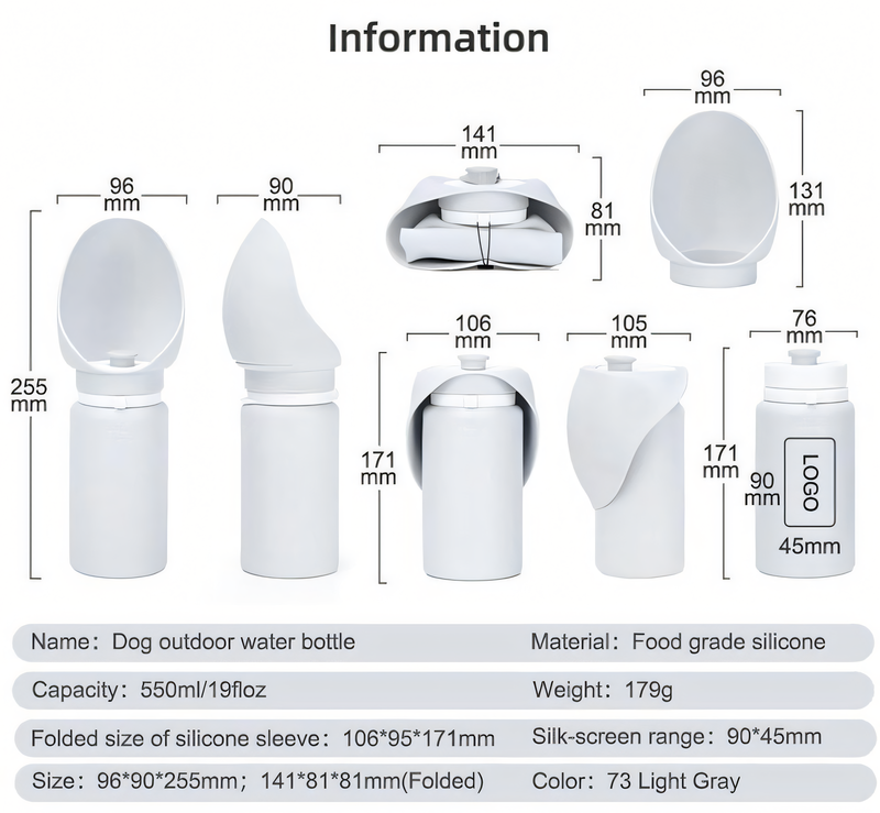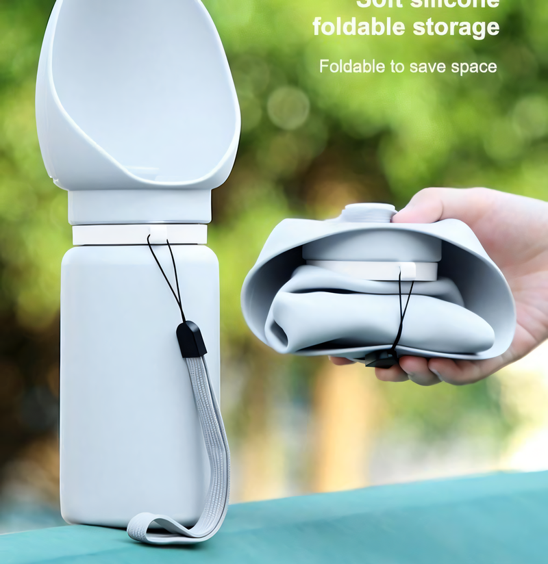 Keep your dog hydrated anywhere! This portable silicone water bottle is collapsible, dustproof, and durable – perfect for walking, hiking, camping, or running.